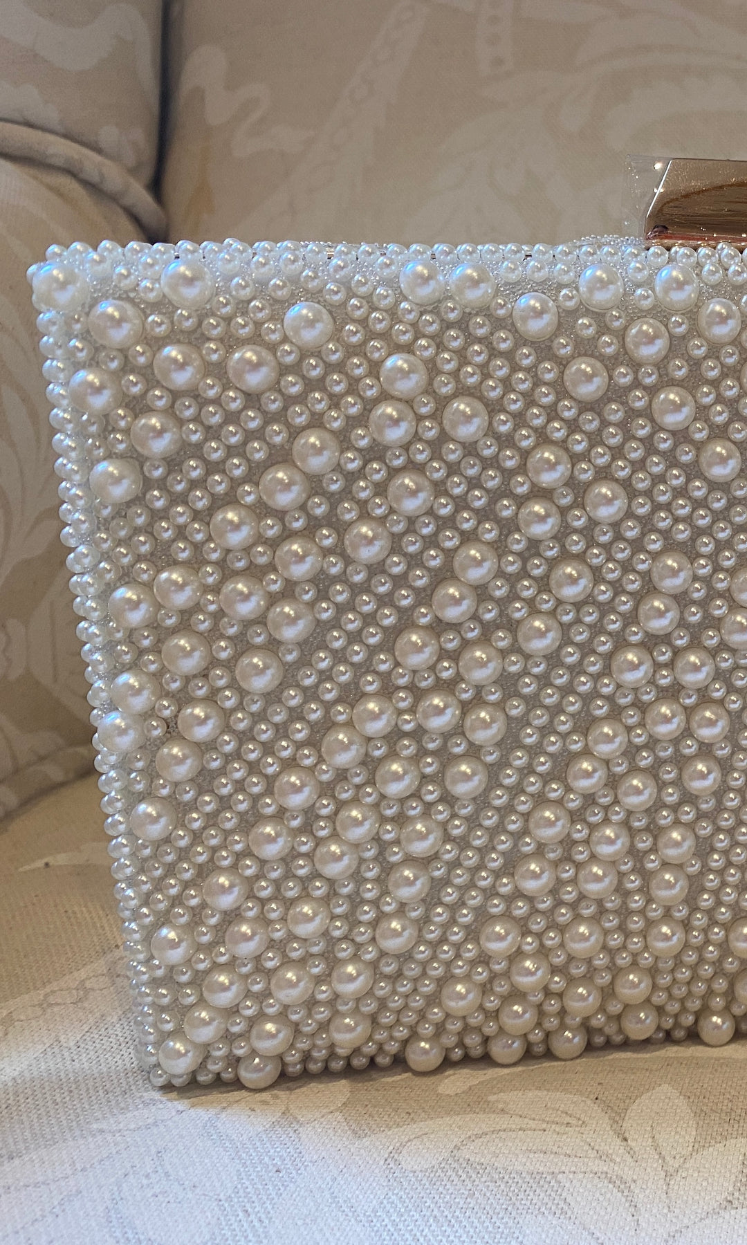 - Cartera rectangular forrada en Perlas, tiene correa larga en el interior.