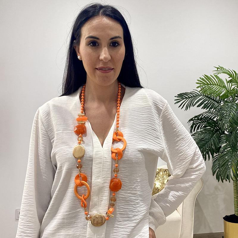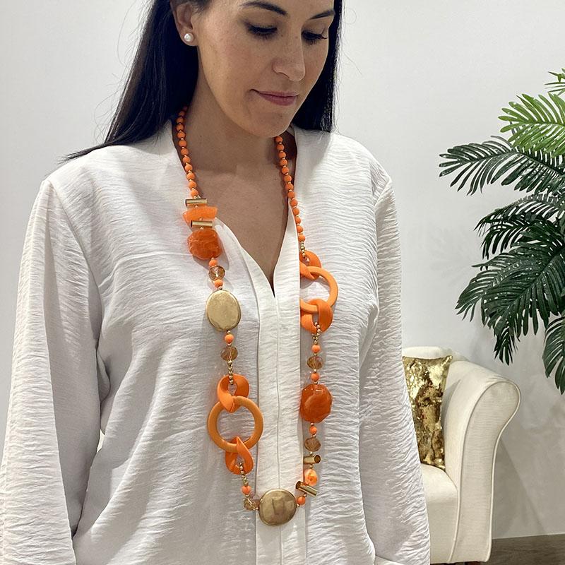 Collar largo de cadenas y eslabones en varios colores y combinando con dorado.