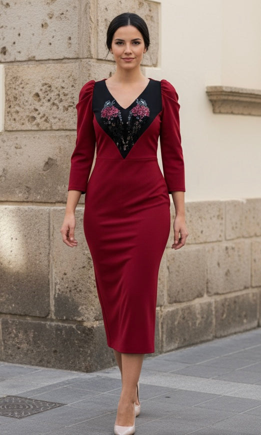 - Sumérgete en la elegancia y la sofisticación con nuestro exquisito vestido confeccionado en punto de alta calidad en un encantador color burdeos y negro. Este vestido destaca por su innovador diseño de corte recto y midi, que combina a la perfección estilo y comodidad. La costura central estiliza la figura de manera espectacular, mientras que el escote en pico decorado con pájaros añade un toque sensual y único. Las mangas francesas con rizo en la parte superior aportan un toque de sofisticación, elevando el conjunto para convertirte en la invitada perfecta en cualquier evento. Además, el cierre con cremallera trasera invisible garantiza un ajuste impecable. Descubre la fusión perfecta entre estilo vanguardista y la elegancia clásica con nuestro imprescindible vestido, diseñado para destacar en cualquier ocasión especial.