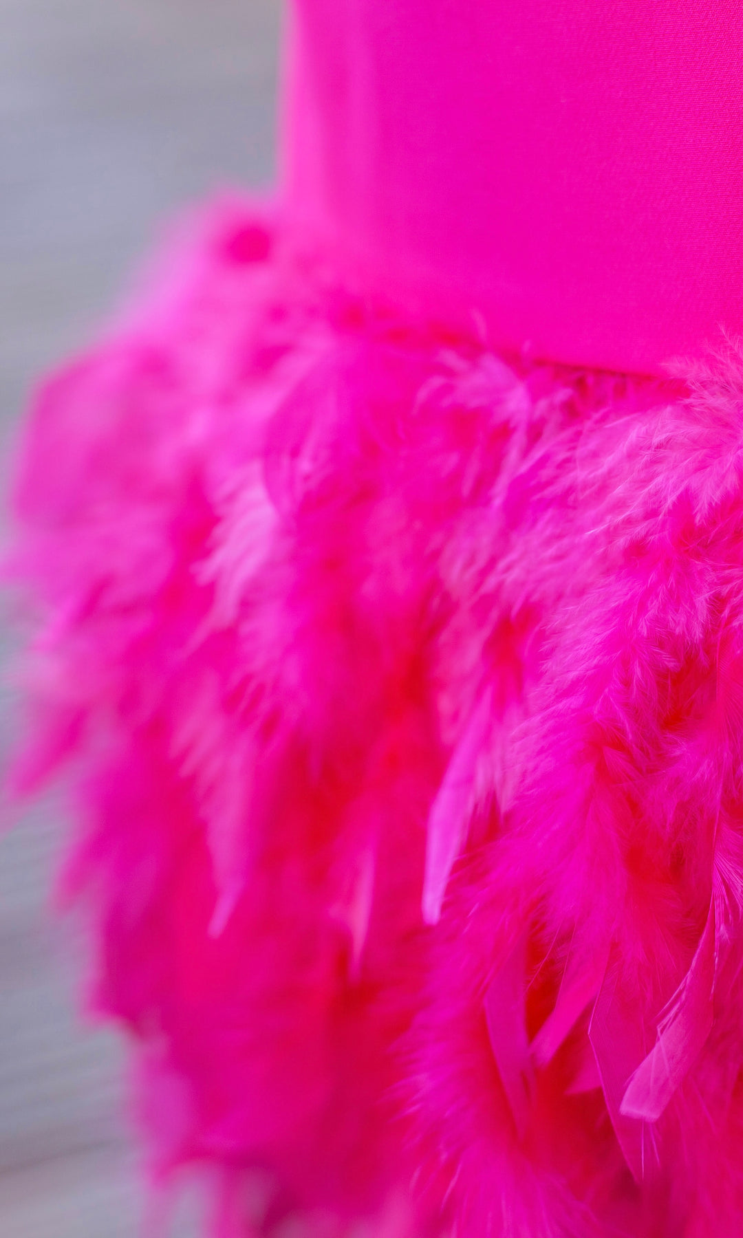 - El vestido confeccionado en crepé bioelástico en un vibrante color fucsia es una elección digna para una mamá de comunión. Con un corte recto y cuello redondo, este vestido presenta una elegante grima central y un corte asimétrico debajo del pecho que realza la figura. Las mangas francesas, con hombreras y rizos, añaden un toque de sofisticación. Su detalle de plumas en la parte inferior agrega un toque de distinción discreta pero impactante. Cierra con cremallera invisible en la parte trasera y un delicado cierre de botón en el cuello. Este vestido es ideal para lucir como la invitada perfecta en cualquier ocasión especial. Fabricación Española.