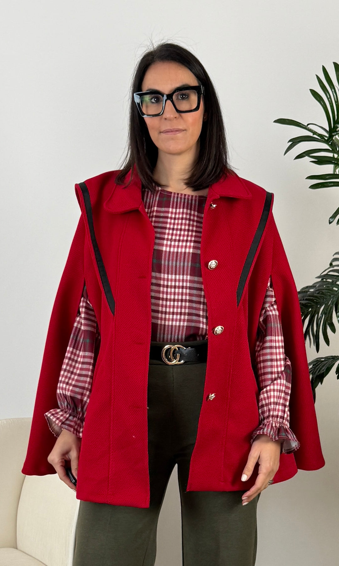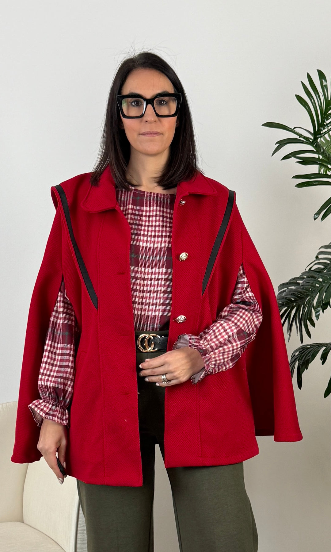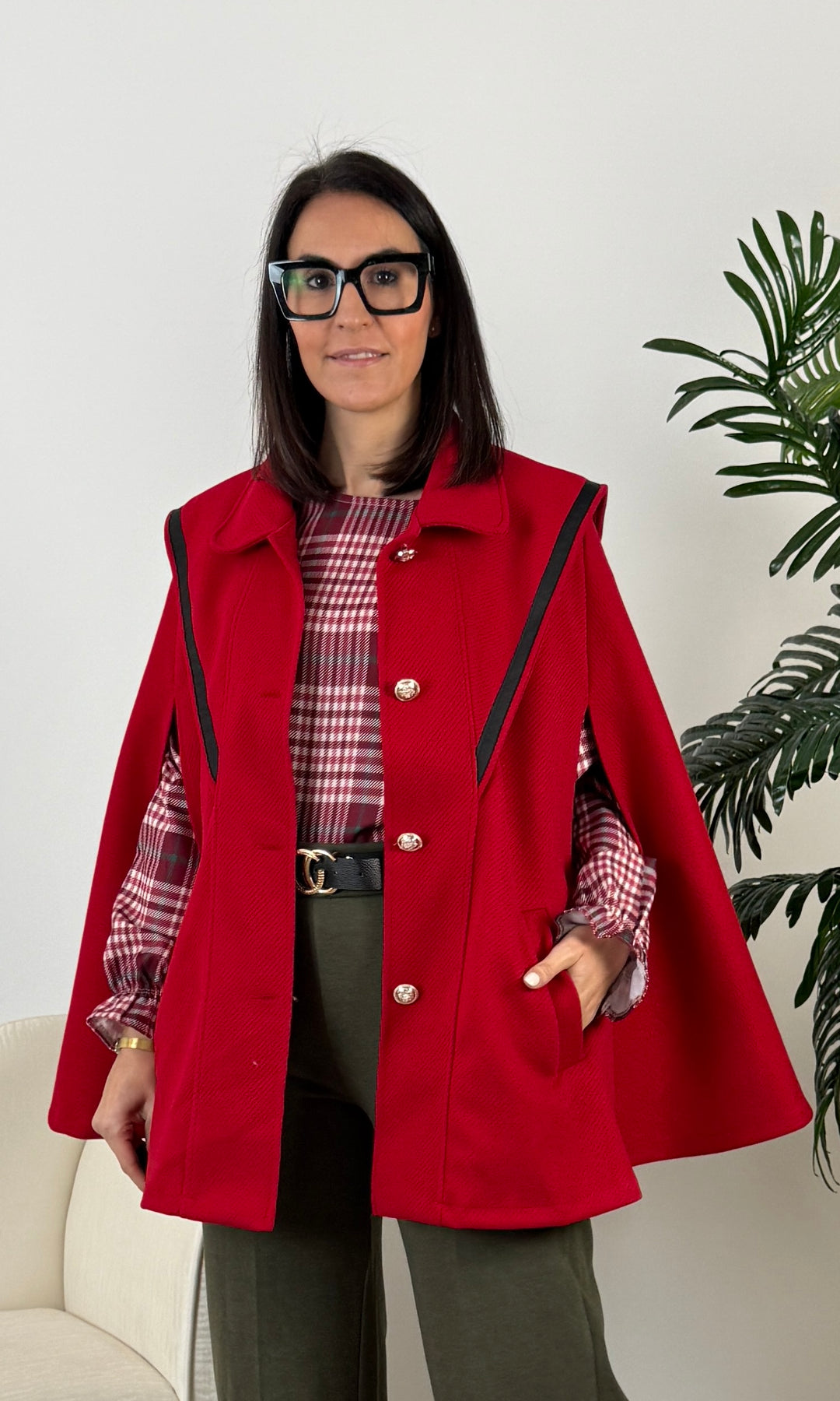 • Capa con solapas y botones dorados. Aporta elegancia y sofisticación a tus looks con esta capa negra para mujer, una prenda que combina a la perfección estilo y comodidad. Diseñada con solapas marcadas, cierre de botones dorados y corte fluido, se adapta a cualquier silueta, aportando movimiento y presencia en cada paso. Ideal para llevar sobre camisas, vestidos o jerséis, esta capa es perfecta para completar tus outfits de otoño e invierno con un toque chic y actual. Su diseño versátil la convierte en una prenda imprescindible para mujeres que buscan moda elegante, exclusiva y con personalidad.