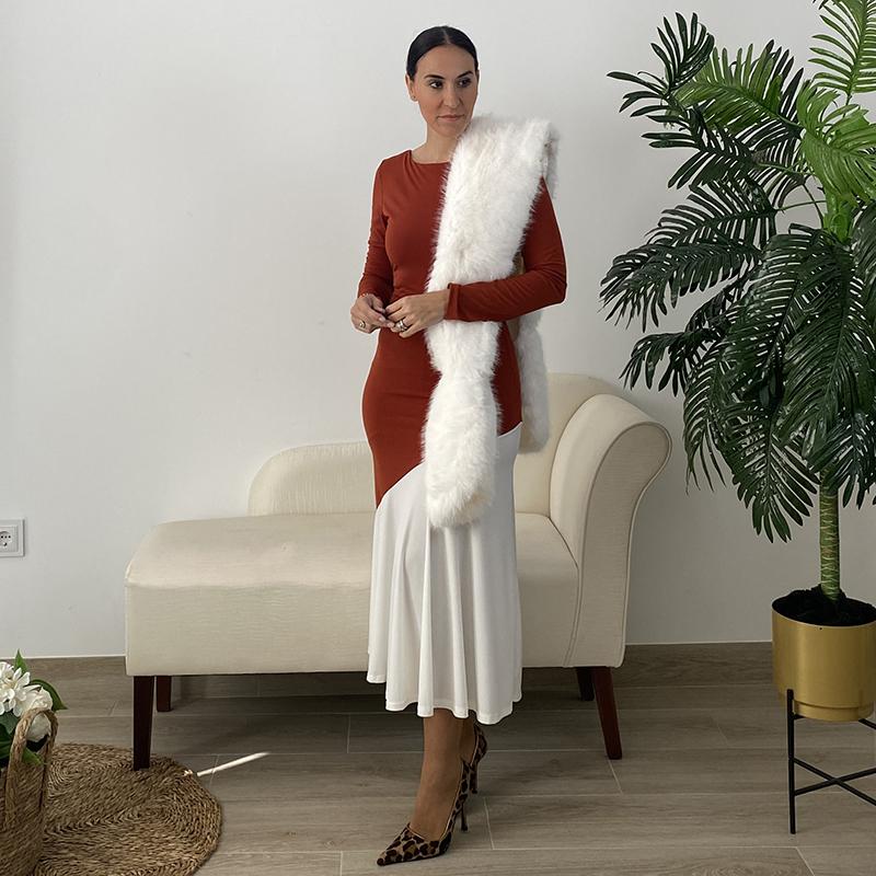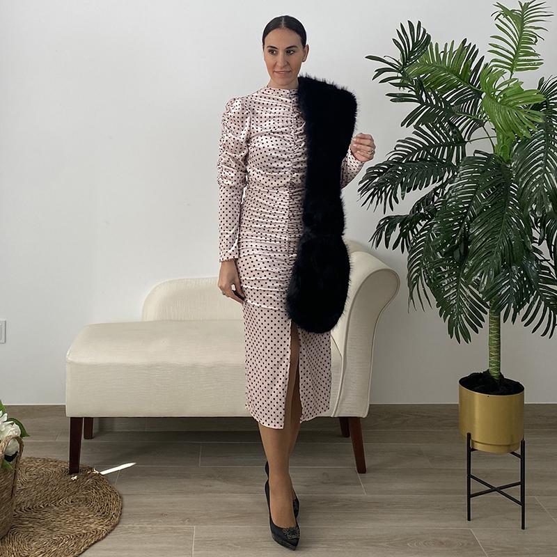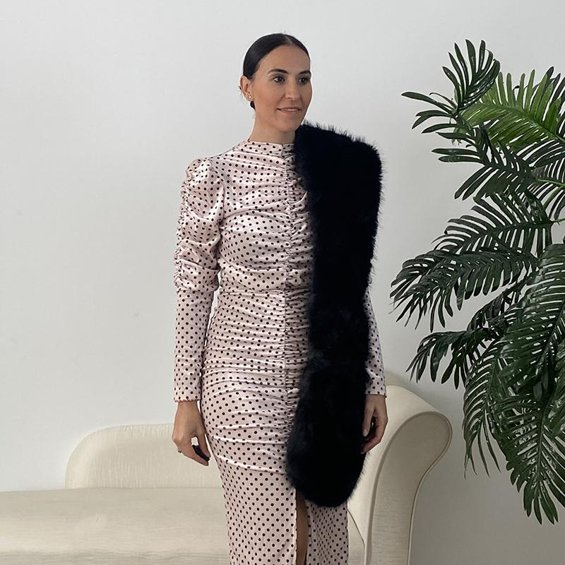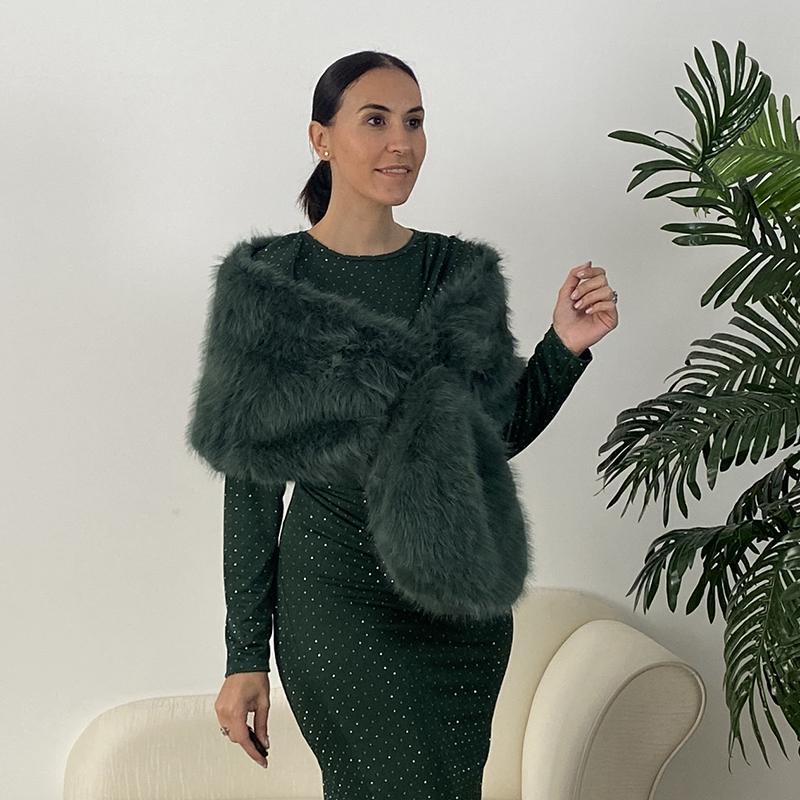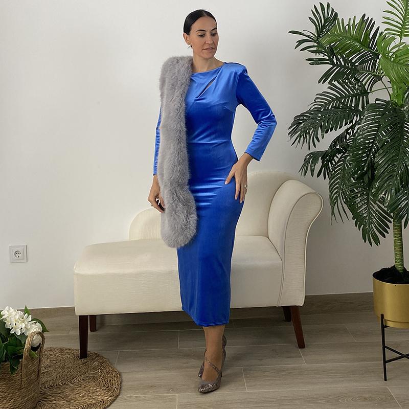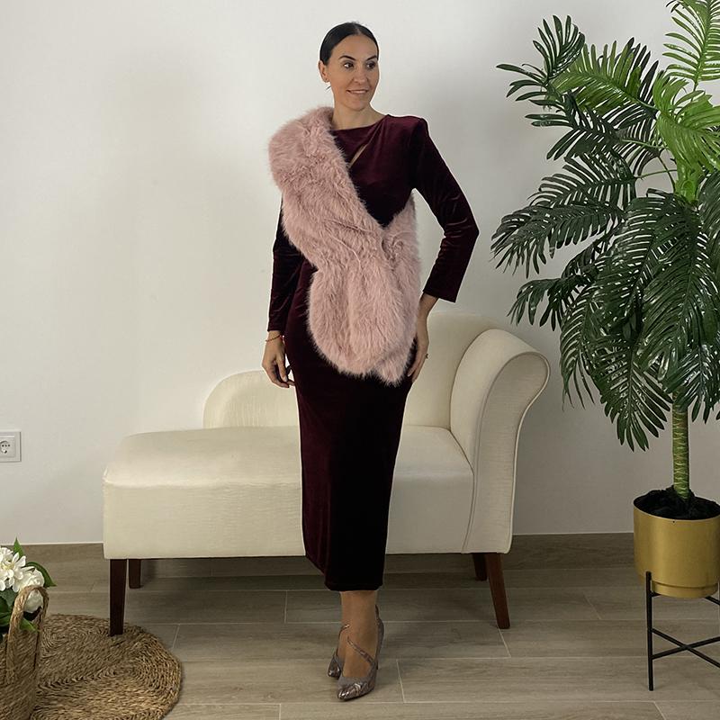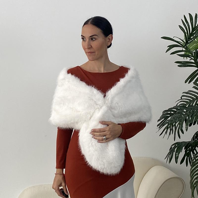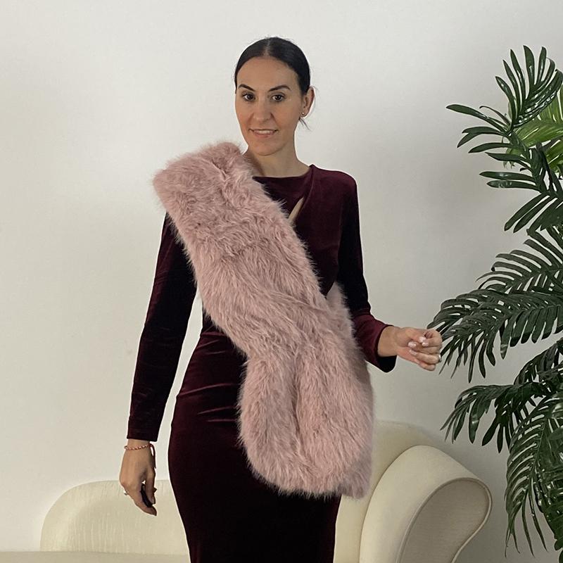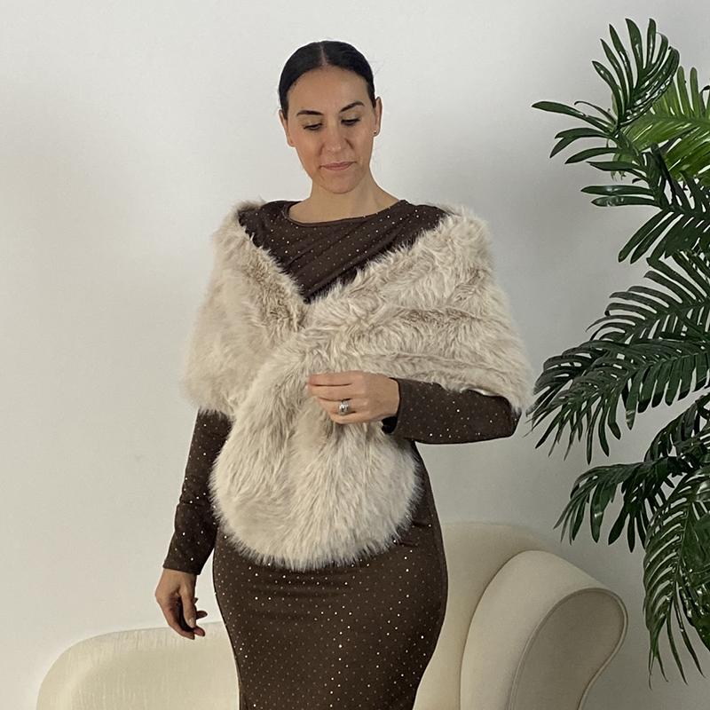 Estola de pelo en color gris tiene enganche para ponerla cerrada.