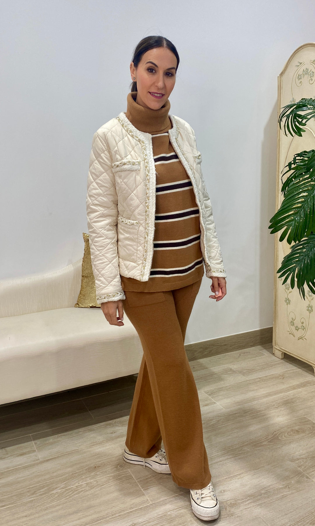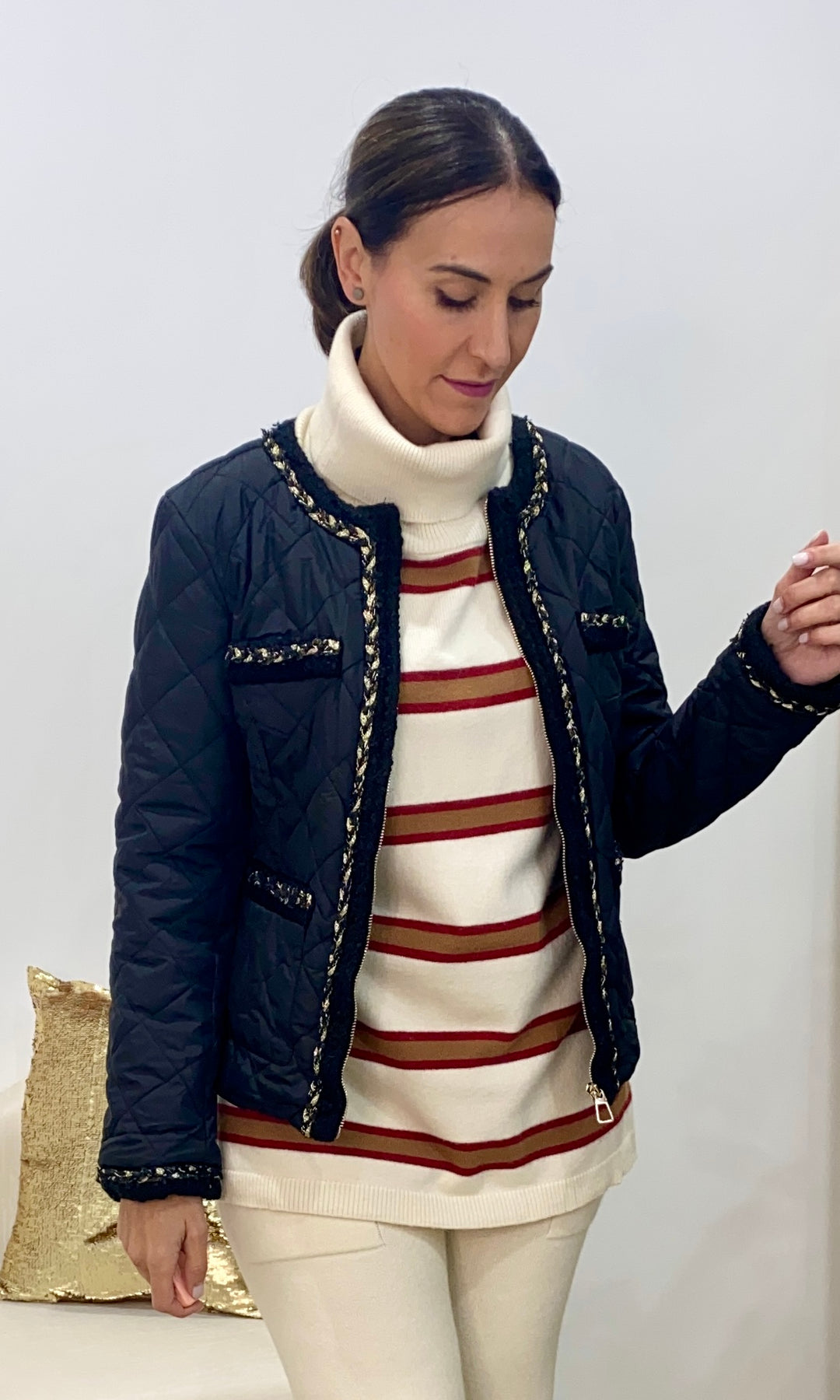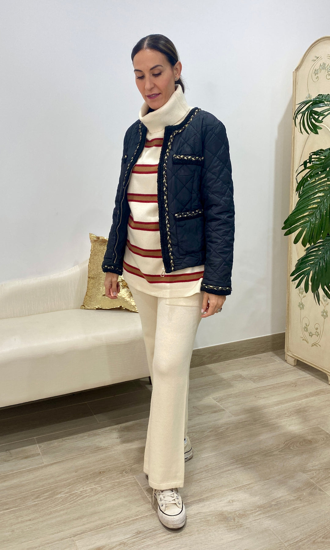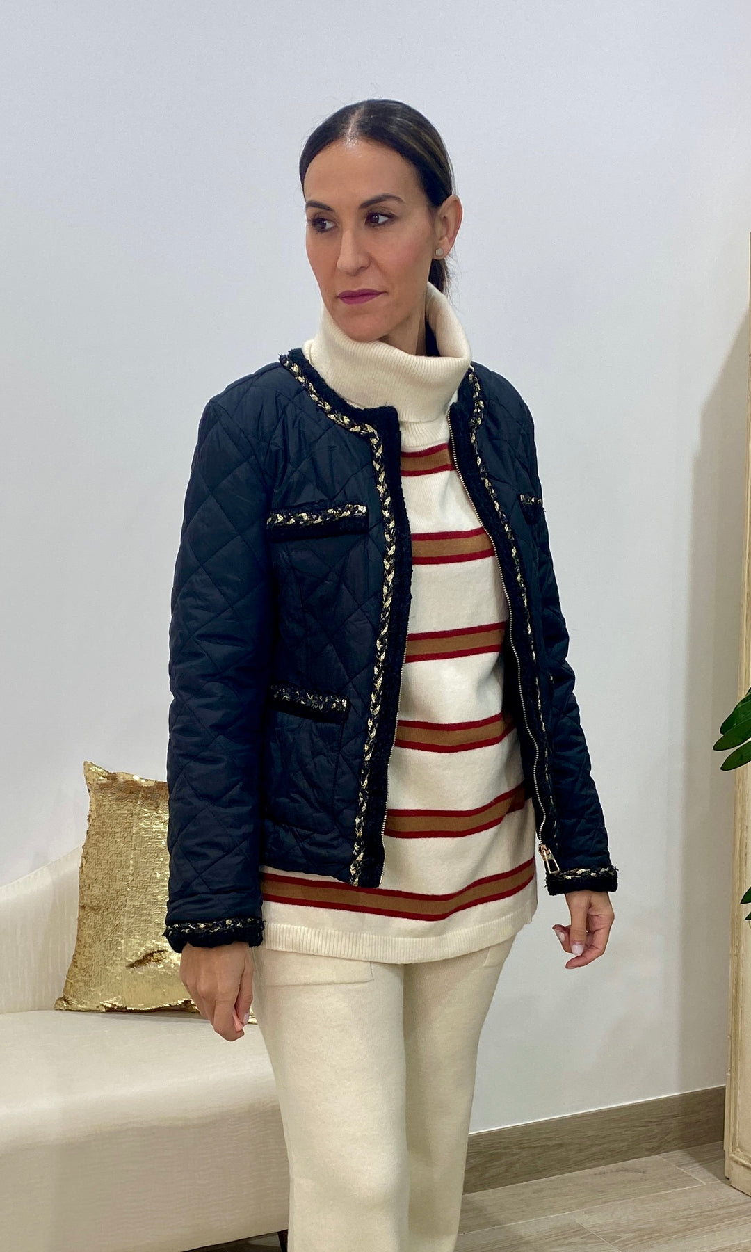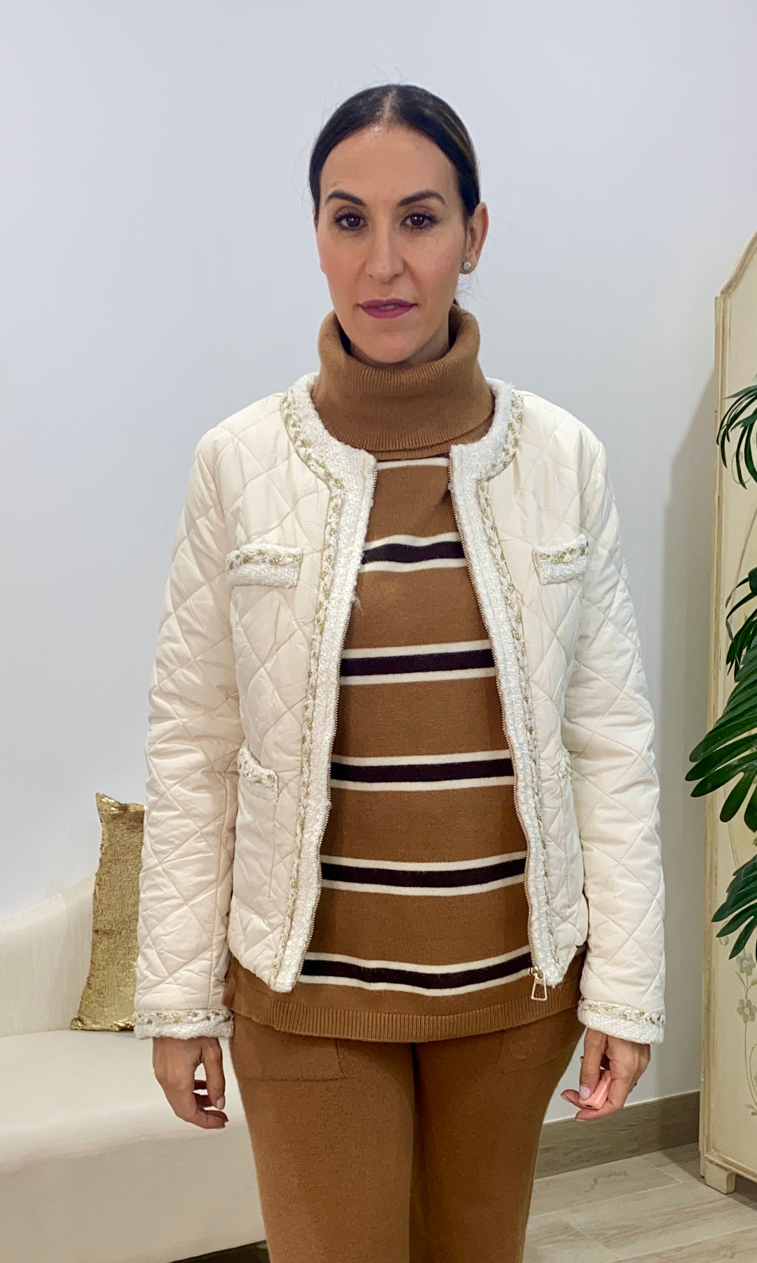 • Eleva tus looks de otoño e invierno con esta chaqueta acolchada para mujer, una prenda tan versátil como elegante. Su diseño recto, ligero y muy cómodo se combina con detalles trenzados que bordean los bolsillos, puños y cuello, aportando un toque cómodo de inspiración chanelera. La chaqueta incluye bolsillos delanteros con botón dorado, perfectos para añadir estilo y funcionalidad. Su tejido acolchado proporciona abrigo sin exceso de volumen, ideal para mujeres que buscan ir arregladas pero cómodas en su día a día: trabajo, planos casuales, paseos o looks más formales. Una prenda de fondo de armario que combina con punto, vaqueros, vestidos y todo lo que quieras.
