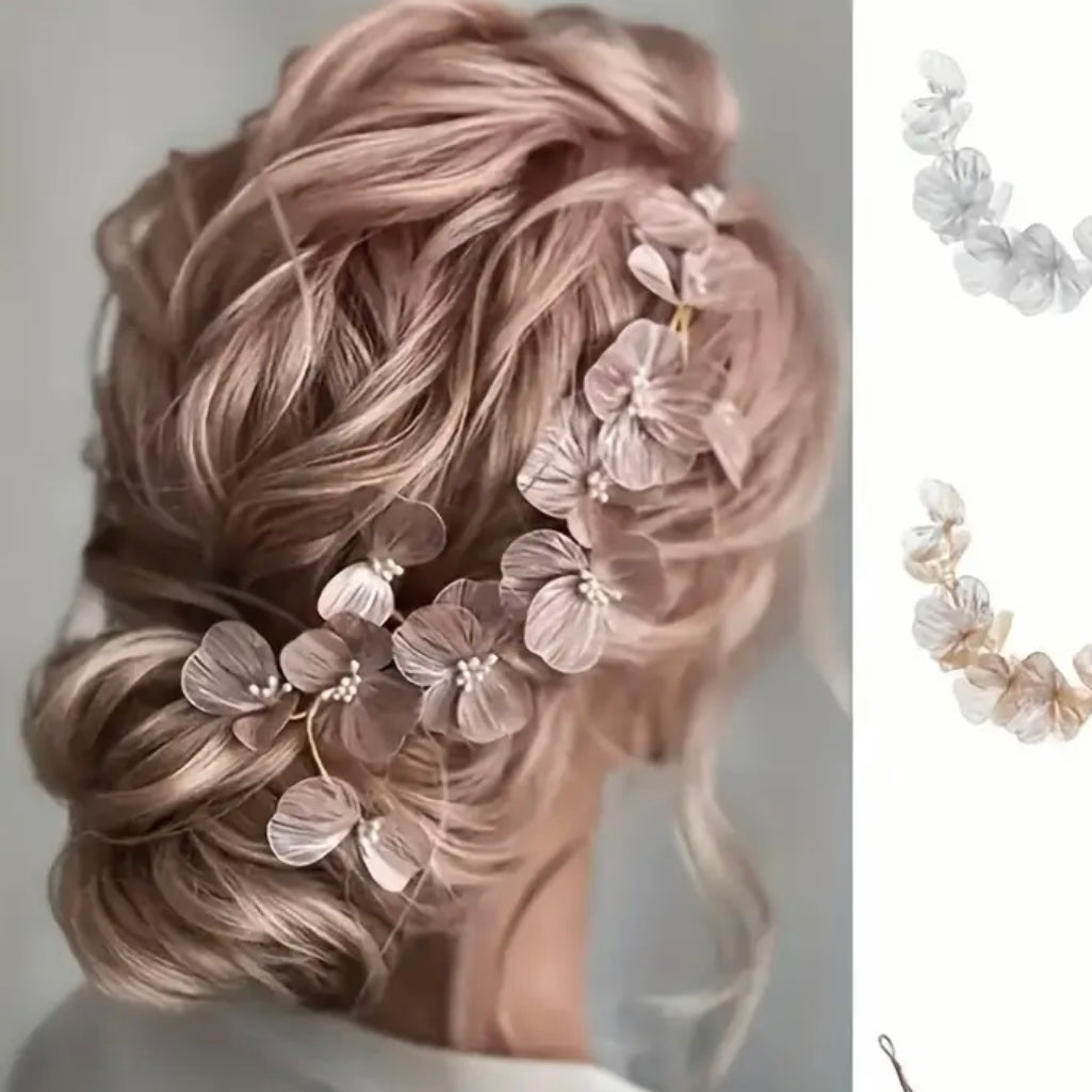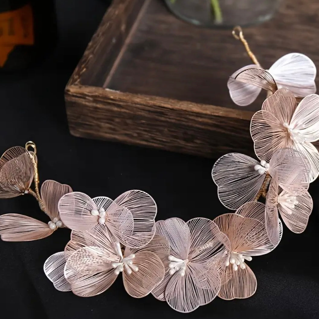Aplicacion realizada en hilos en color dorados, haciendo forma en flores. Se ouede utilizar para el pelo o como decoradion para vestido.